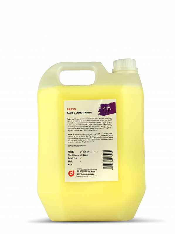 Fabso is a fabric softener and conditioner which removes the stiffness caused by washing in some fabrics especially cotton and Turkish towels. It acts as a conditioner to all fabrics. It softens the fabrics, gives it shine and leaves them with a lingering Fragrance. Fabso helps in maintaining the original softness and texture of the fabrics. It prevents deterioration of the fabric due to over use of detergents. Using Fabso regularly increases the durability of the clothes.