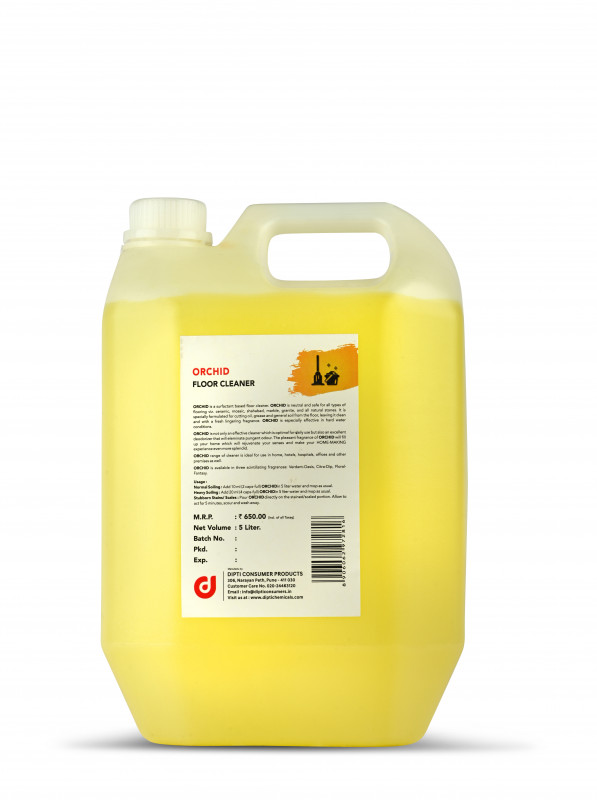 Orchid is a surfactant based floor cleaner. Orchid is neutral and safe for all types of flooring viz. ceramic, mosaic, shahabad, marble, granite, and all natural stones. It is specially formulated for cutting oil, grease and general soil from the floor, leaving it clean and with a fresh lingering fragrance. Orchid is especially effective in hard water conditions. Orchid is not only an effective cleaner which is optimal for daily use but also an excellent deodorizer that will eleminate pungent odour. The pleasant fragrance of Orchid will fill up your home which will rejuvenate your senses and make your HOME-MAKING experience even more splendid. Orchid range of cleaner is ideal for use in home, hotels, hospitals, offices and other premises as well. Orchid is available in 5 scintillating fragrances: Verdant-Oasis, Citra-Dip, Floral Fantasy, Sandal Delight & Lemongrass