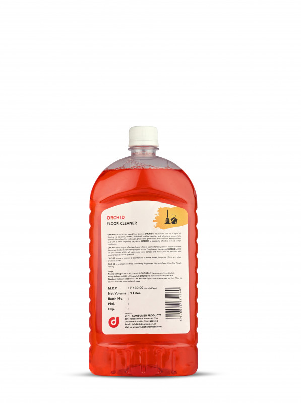 Orchid is a surfactant based floor cleaner. Orchid is neutral and safe for all types of flooring viz. ceramic, mosaic, shahabad, marble, granite, and all natural stones. It is specially formulated for cutting oil, grease and general soil from the floor, leaving it clean and with a fresh lingering fragrance. Orchid is especially effective in hard water conditions. Orchid is not only an effective cleaner which is optimal for daily use but also an excellent deodorizer that will eleminate pungent odour. The pleasant fragrance of Orchid will fill up your home which will rejuvenate your senses and make your HOME-MAKING experience even more splendid. Orchid range of cleaner is ideal for use in home, hotels, hospitals, offices and other premises as well. Orchid is available in 5 scintillating fragrances: Verdant-Oasis, Citra-Dip, Floral Fantasy, Sandal Delight & Lemongrass