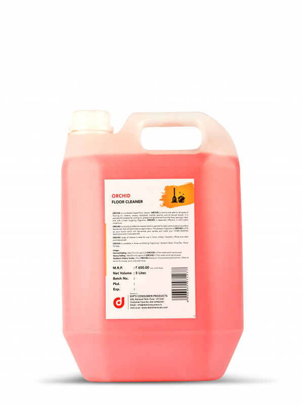 Orchid is a surfactant based floor cleaner. Orchid is neutral and safe for all types of flooring viz. ceramic, mosaic, shahabad, marble, granite, and all natural stones. It is specially formulated for cutting oil, grease and general soil from the floor, leaving it clean and with a fresh lingering fragrance. Orchid is especially effective in hard water conditions. Orchid is not only an effective cleaner which is optimal for daily use but also an excellent deodorizer that will eleminate pungent odour. The pleasant fragrance of Orchid will fill up your home which will rejuvenate your senses and make your HOME-MAKING experience even more splendid. Orchid range of cleaner is ideal for use in home, hotels, hospitals, offices and other premises as well. Orchid is available in 5 scintillating fragrances: Verdant-Oasis, Citra-Dip, Floral Fantasy, Sandal Delight & Lemongrass